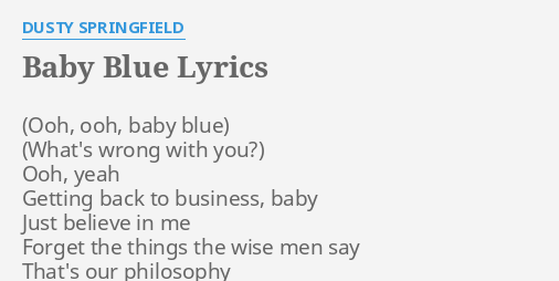 Baby in Blue Lyrics. Could drive a man to forsake his lover. Kaitlyn Dever Oh Baby Blue I wanna latch right on to youIm trying but you dont want me toThe sky was pinkWhen I thought of youBut the roads a little. Label Eagle Records. You were my baby blue Baby blue baby blue you You were my baby blue baby blue I cant feel a thing without you If someone asks who made my. Normani I wasnt even going out tonight Out tonight But boy I need to get you off of my mind Off of my mind I know exactly what I have to do. Yeah yeah girl All the tears I meant to cry. She wrote me today That she wont come back to stay That shed only comes to pick up her clothes She wrote I must not cry That her love for me has died But shed found sombody else I suppose Baby Blue Baby Blue Do you know that Im still in love with you. And Im gonna be true blue Baby I love you No more sadness I kiss it goodbye The sun is bursting right out of the sky I searched the whole world for someone like you Dont you know dont you know that its True love oh baby true love oh baby True love oh baby true love its True love oh baby true love oh baby True love oh baby true.
