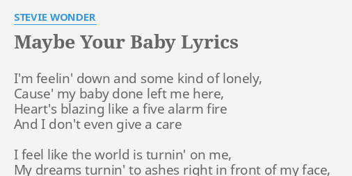 Watch the video for Maybe Your Baby from Stevie Wonders Talking Book for free and see the artwork lyrics and similar artists. Im feelin down and some kind of lonely Cause my baby done left me here Hearts blazing like a five alarm fire And I dont even give a care I feel. CAPO 4th FRET Original Key.