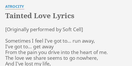Sometimes I feel Ive got to Run away Ive got to Get away 3mm the pain that you drive into the heart of me The love we share Seems to go nowhere Ive lost my lights ltoss and turn I cant sleep at night Once I ran to you I ran Now Ill run from you This tainted love youve given I give you all a boy could give you Take my tears and thats not nearly all Tainted love Tainted love Now I. Sometimes I feel Ive got to Run away Ive got to Get away From the pain you drive into the heart of me The love we share whoa oh oh oh Seems to go nowhere And Ive lost my light For I toss and turn I cant sleep at night Once I ran to you I ran Now Ill run from you This tainted love youve given I give you all a boy could give you Take my tears and thats not nearly all Tainted love. Lesterghallig posted on their Instagram profile.