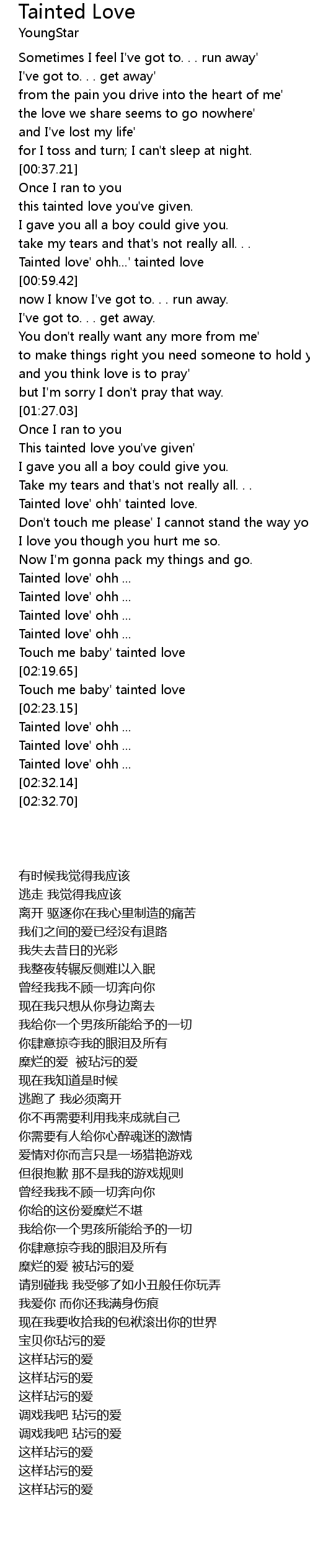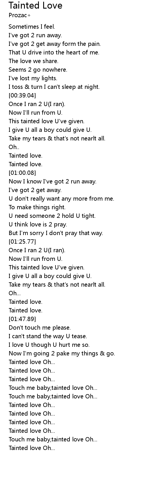And the love we share seems to go nowhere. TPG-13 Genre andor Pairing. Tainted Love Lyrics.