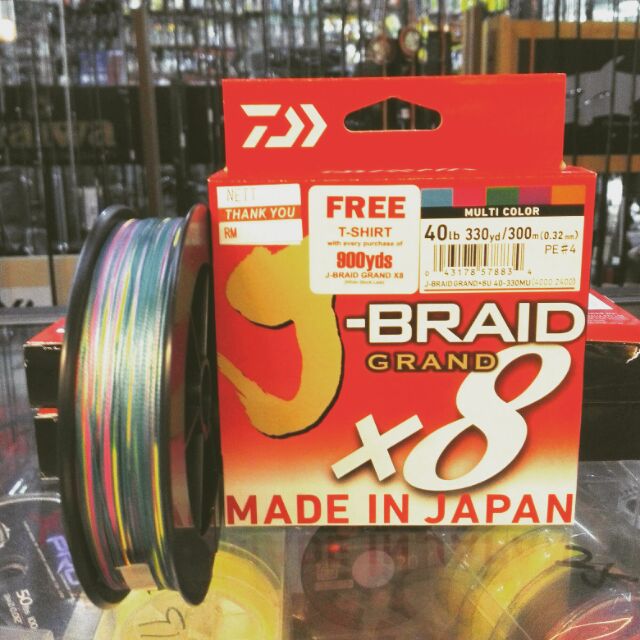 Quick Overview The J Braid Grand X8 is the advanced version of the world famous J Braid X8. In stock Leadtime to ship. Daiwa J Braid - 300 M - Multi-Color.